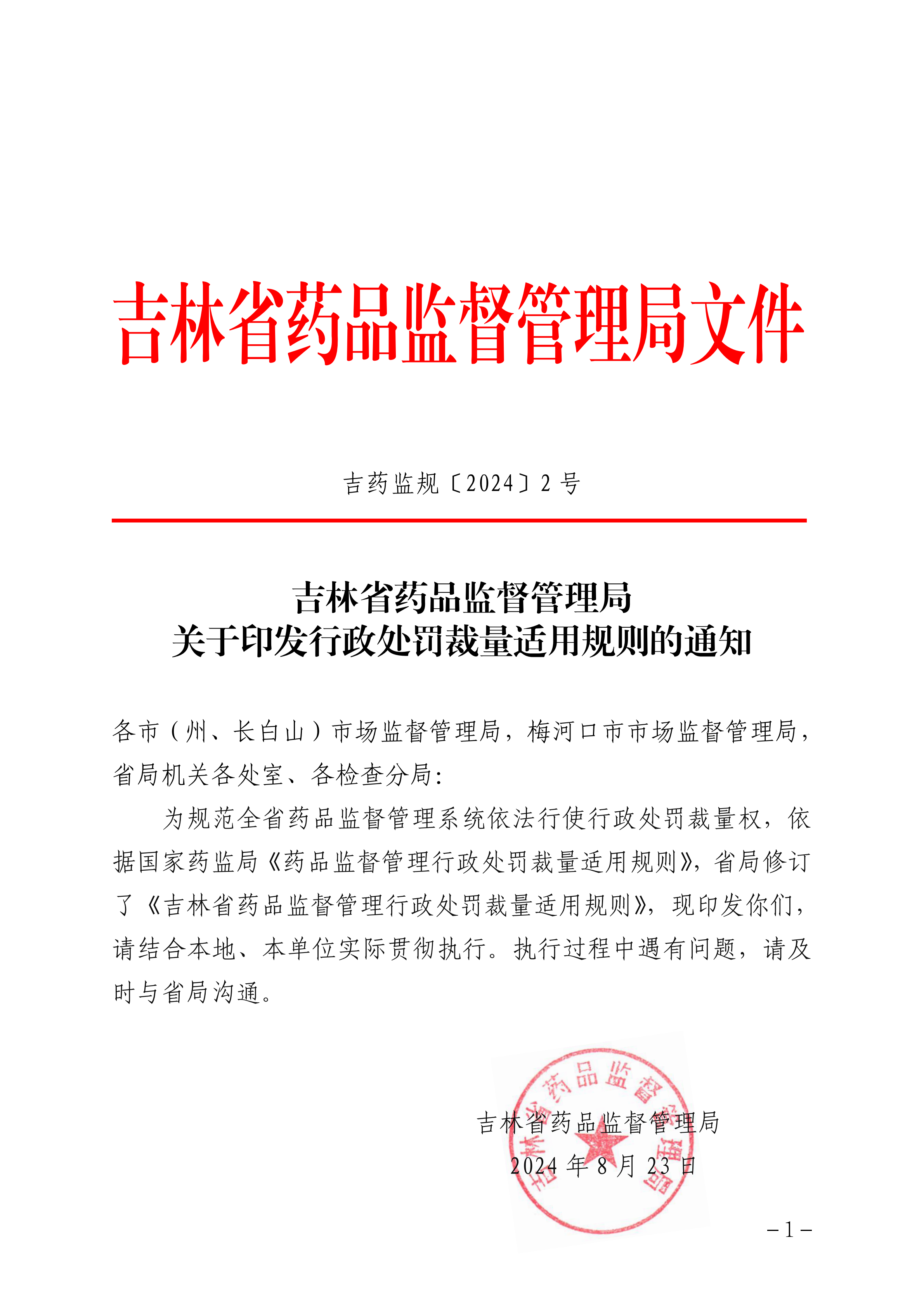 必赢-必赢bwin-必赢官网 关于印发行政处罚裁量适用规则的通知 吉药监规〔2024〕2号